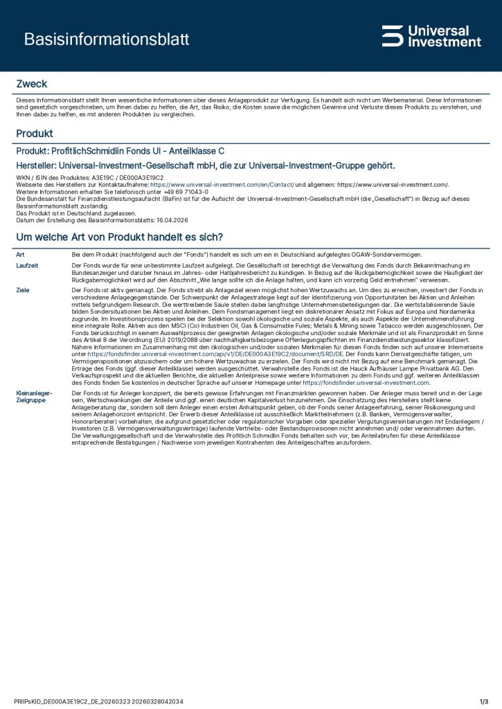 Eine Anlage in erwähnte Finanzinstrumente/Anlagestrategie/Finanzdienstleistung beinhaltet gewisse produktspezifische Risiken – z.B. Markt- oder Branchenrisiken, das Währungs-, Ausfall-, Liquiditäts-, Zins- und Bonitätsrisiko – und ist nicht für alle Anleger geeignet. Daher sollten mögliche Interessenten eine Investitionsentscheidung erst nach einem ausführlichen Anlageberatungsgespräch durch einen registrierten Anlageberater und nach Konsultation aller zur Verfügung stehenden Informationsquellen treffen. Zur weiteren Information finden Sie die ”Wesentlichen Anlegerinformationen“ und das Wertpapierprospekt kostenlos bei der zuständigen Verwahrstelle oder bei Universal-Investment, Theodor-Heuss-Allee 70, 60486 Frankfurt am Main, Tel. 069-71043-0, oder unter www.universal-investment.com.
